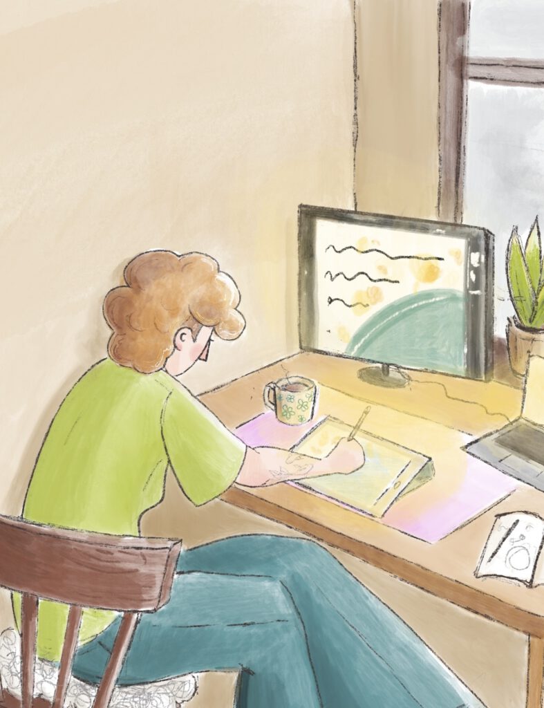 eine Illustratorin und Grafikdesignerin, die am liebsten fröhliche und liebevolle Illustrationen erstellt. Das Spannende ist, meine breite Bandbreite an Skills! Ob Corporate Design, Fotografie oder Illustrationen.